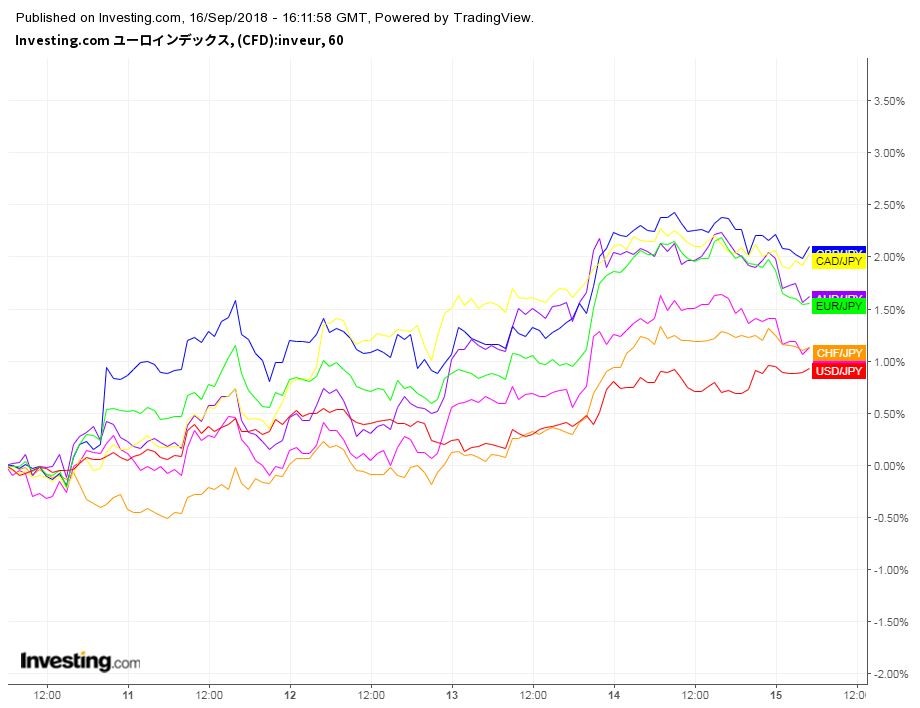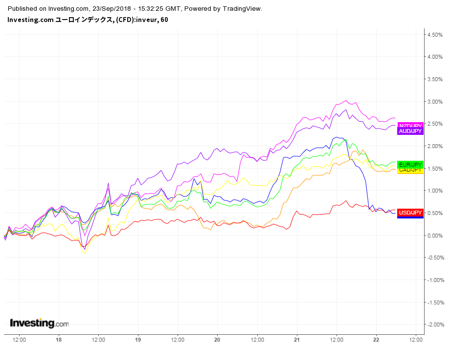 最近ずっとリスクオン相場になってるね、理由は分かんないけど色んなペアでブレイクしてたり、転換してそうな動きがある。